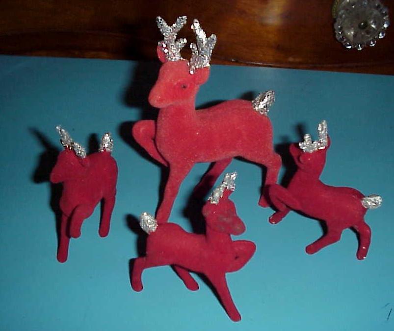 Unfortunately my favorite family hand-me-downs disappeared in a move....but my favorites as a kid were ones like these (these are on ebay)....felted deer that my grandfather actually felted...but ours were turquoise with sparkles!  These were very popular during the 40's to 50's.