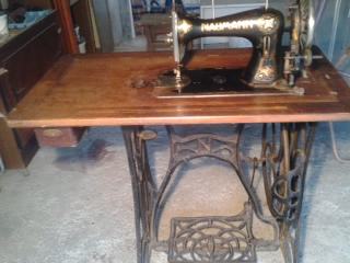 I already have two handcranks circa 1870 and 1896 that I use for living history demonstrations and one treadle circa 1919, so I'm full-up! I do all of my sewing on the treadle and it is a delight. Quilters here especially love them because they offer a level of control you sacrifice with an electrified machine. It's only been in the last few years that they have been "rediscovered" by collectors and by people who want a decent machine that will last a lifetime, instead of a modern one with plastic internal parts that costs more to fix than it is worth. Electric machines from the 60's are good, well made machines as well. I went through two of those junky plastic ones before I got my treadle. I'll never go back to electric. When I do the living history demos people are blown away, they can't believe that something so old still works so well and how easy they are to operate! I put even the tinest kids on the treadle and the handcranks. It is funny but the kids catch on faster to the treadle than the adults. They don't try to drive it like a car and will respond correctly when the centrifugal force begins kicking in.